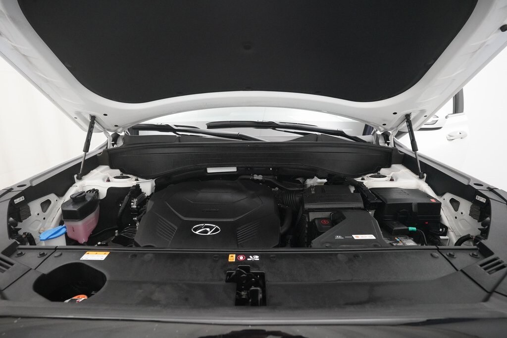 Hyundai Certified Used Vehicles Certified, 3rd Row Seats, 4-Wheel Disc Brakes, 6 Speakers, ABS Brakes, Air Conditioning, Alloy wheels, AM/FM Radio, Available Sirius XM Radio, Apple CarPlay & Android Auto, Auto High-beam Headlights, Auto-dimming Rear-View mirror, Automatic temperature control, Brake Assist, Bumpers: body-color, Delay-off headlights, Driver door bin, Driver vanity mirror, Dual front impact airbags, Dual front side impact airbags, Dual-Climate Control, Electronic Stability Control, Emergency Communication System, Four wheel independent suspension, Front anti-roll bar, Front Bucket Seats, Front Center Armrest, Front reading lights, Fully Automatic Headlights, H-Tex Leatherette Seat Trim, Heated Front Bucket Seats, Heated Front Seats, Heated Sideview Mirrors, Illuminated Entry, Knee airbag, Leather steering wheel, Low Tire Pressure Warning, Navigation System, Occupant sensing airbag, Option Group 01, Outside Temperature Display, Overhead airbag, Overhead console, Panic Alarm, Passenger door bin, Passenger vanity mirror, Power Adjusting Driver Seat, Power door mirrors, Power Liftgate, Power passenger seat, Power steering, Power Windows, Radio data system, Radio: AM/FM/MP3 Audio System, Rear air conditioning, Rear anti-roll bar, Rear audio controls, Rear reading lights, Rear side impact airbag, Rear Spoiler, Rear Window Wiper, Rear-View Camera, Rear/Front Window Defroster, Reclining 3rd row seat, Remote Keyless Entry, Security System, Speed control, Speed-sensing steering, Split Folding Rear Seat, Steering Wheel Mounted Controls, Tachometer, Telescoping steering wheel, Tilt steering wheel, Traction Control, Trip computer, Turn Signal Indicator Mirrors, Variably intermittent wipers, Wheels: 18" x 7.5J Painted Finish Alloy.
