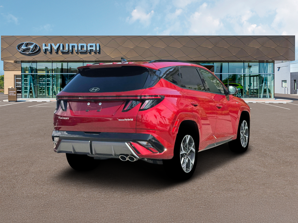 WE DELIVER! BUY ONLINE-TEXT-EMAIL-CHAT-PHONE AND WE WILL DELIVER YOUR NEXT VEHICLE TO YOUR DOOR! FROM OUR SALES FLOOR TO YOUR DOOR! IT'S THAT EASY! DUE TO THE ONGOING SHORTAGE OF NEW VEHICLES, WE RESERVE THE RIGHT TO ADD A SURCHARGE TO OUR ONLINE PRICES FOR CUSTOMERS NOT IN OUR MARKET IN ORDER TO BETTER PROVIDE VEHICLES IN THESE UNIQUE TIMES TO OUR IN MARKET CUSTOMERS. Ultimate Red 2025 Hyundai Tucson Hybrid N Line AWD 6-Speed Automatic 1.6L I4 DGI Hybrid Turbocharged DOHC 16V LEV3-SULEV30