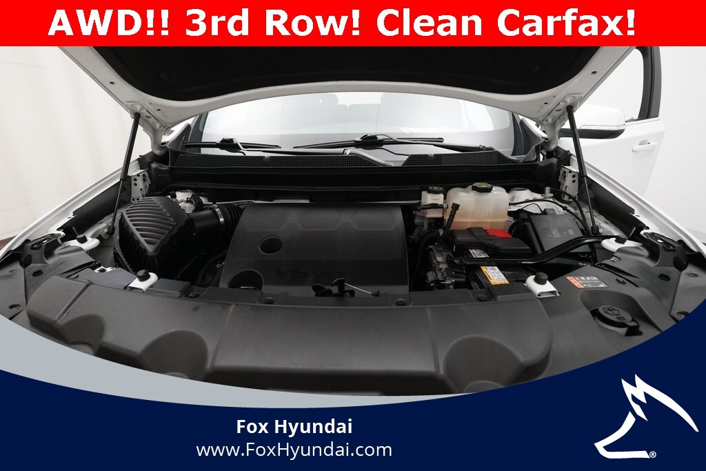 AWD, 1st & 2nd Row All-Weather Floor Mats, 2-Way Manual Front Passenger Seat Adjuster, 3.49 Axle Ratio, 3rd Row All-Weather Floor Mats, 3rd Row Seats, 4-Wheel Disc Brakes, 6 Speakers, 6-Speaker Audio System Feature, 8-Way Power Driver Seat Adjuster, ABS Brakes, Air Conditioning, All-Weather Cargo Mat (LPO), Alloy wheels, AM/FM Radio, Available Sirius XM Radio, Apple CarPlay/Android Auto, Auto High-beam Headlights, Automatic temperature control, Black Bowtie, Black Roof Rails, Brake Assist, Bumpers: body-color, Compass, Delay-off headlights, Driver door bin, Driver vanity mirror, Dual front impact airbags, Dual front side impact airbags, Dual-Climate Control, Electronic Stability Control, Emergency Communication System, First Aid Kit (LPO), Four wheel independent suspension, Front anti-roll bar, Front Bucket Seats, Front Center Armrest, Front reading lights, Fully Automatic Headlights, Garage door transmitter, Heated Driver & Front Passenger Seats, Heated Front Seats, Heated Sideview Mirrors, Heavy-Duty Cooling System, Highway Safety Kit, Hitch Guidance w/Hitch View, Illuminated Entry, Interior Protection Package (LPO), Leather steering wheel, Low Tire Pressure Warning, Not Equipped w/Rear Park Assist (060), Occupant sensing airbag, Outside Temperature Display, Overhead airbag, Overhead console, Panic Alarm, Passenger door bin, Passenger vanity mirror, Power Adjusting Driver Seat, Power door mirrors, Power Driver Lumbar Control, Power Liftgate, Power steering, Power Windows, Preferred Equipment Group 1LT, Premium Cloth Seat Trim, Radio data system, Radio: Chevrolet Infotainment 3 Plus System, Rear air conditioning, Rear anti-roll bar, Rear reading lights, Rear Spoiler, Rear Window Wiper, Rear-View Camera, Rear/Front Window Defroster, Remote Keyless Entry, Roadside Safety Package (LPO), Security System, SiriusXM w/360L, Speed control, Speed-sensing steering, Steering Wheel Mounted Controls, Tachometer, Telescoping steering wheel, Tilt steering wheel, Traction Control, Trailering Assist Guidelines, Trailering Equipment, Trip computer, Turn Signal Indicator Mirrors, Variably intermittent wipers, Voltmeter, Wheels: 18" Bright Silver-Painted Aluminum, AWD.